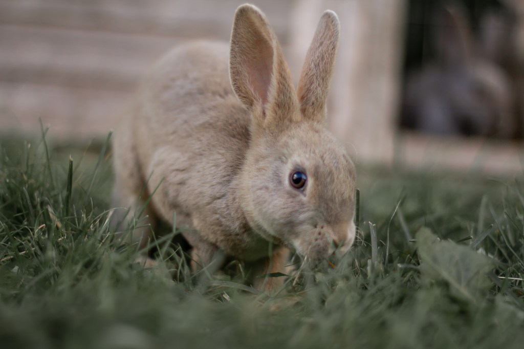 Om sommeren kan gress være et fint innslag, men det er viktig å huske på at plengress har en mye høyere næringstetthet enn høy, og det kan fort bli et sjokk for kaninens ømfintlige fordøyelsessystem ved brå overgang. Ta derfor tilvenning til gress langsomt, og gi de tilgang på høy også.