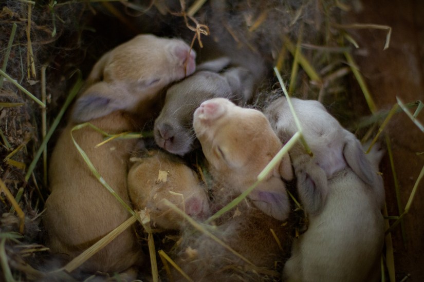 Først og fremst er det viktig å la mor få ha ungene sine i fred så mye som mulig. For mange hunnkaniner er det veldig stressende at vi roter for mye med ungene, og hvis hun stresser for mye, kan hun ende med å ta livet av sine egne unger.