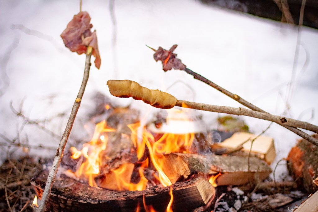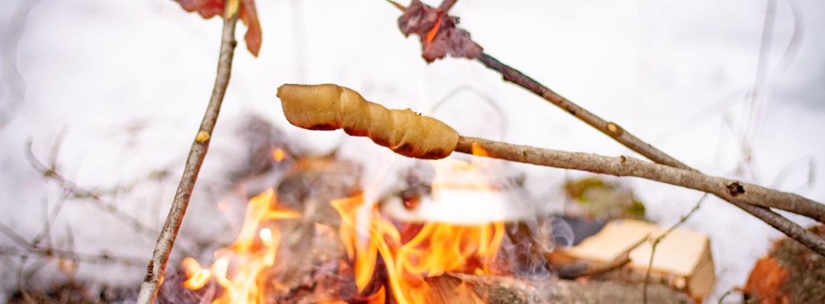 Tvinn deigen rundt spikkede bålpinner, og hold over de varme glørne, mens du passer på å snu ofte.